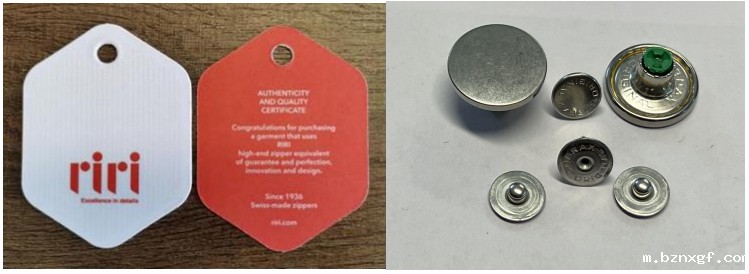 来自顶级纽扣供应商 CobraX,是 F@ndi,Di@r 等奢牌的常年御用合作商,铜扣件自带迷人金属光泽,底部防伪 Logo 清晰可见。