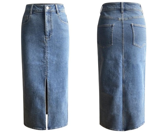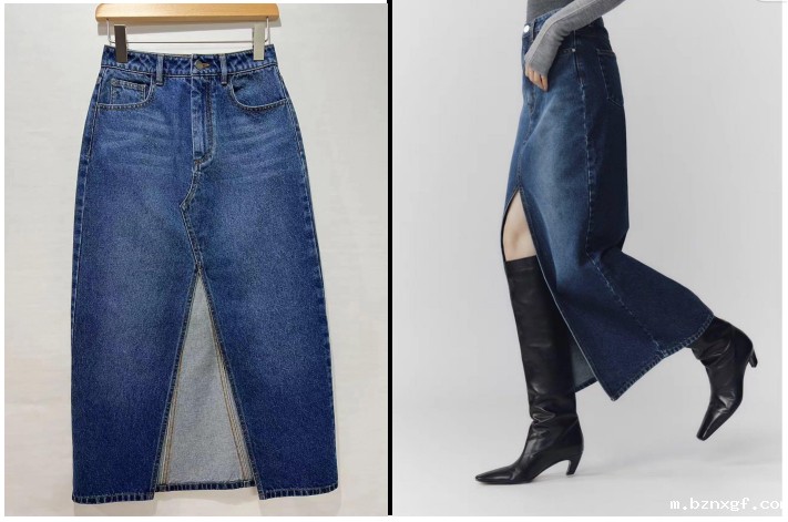 牛仔开衩半裙
